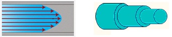 Laminar or smooth flow (Figure 1) tends to take place at lower flow rates in smaller pipes, where the fluid particles flow in cylinders where the outermost cylinder that touches the pipe wall does not move because of viscosity.