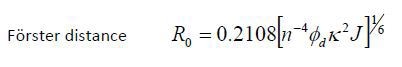 Where n stands for the refractive index, Φd is the donor fluorescence quantum yield, and κ is the orientation factor for the transition dipoles. For a random orientation κ2 is 2/3, which is the distance at which the possibility of the excited state donor emitting fluorescence or transferring energy is 50%.