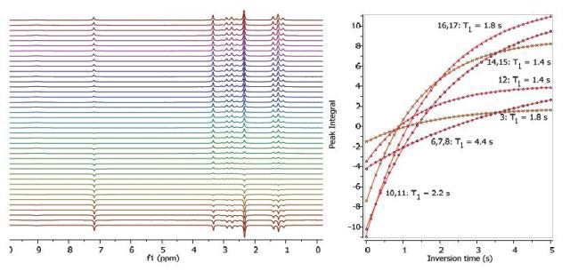 Figure 2. Proton T1 relaxation time measurement of 200 mM lidocaine in CDCl3.