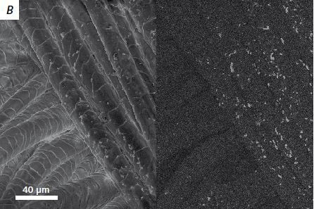 The benefits of the VPSE detector is illustrated on a polymer sample where excellent signal-to-noise, and good resolution, are clearly seen (Figure 5A). In addition, it is possible to image natural fibers coated with silver nano-particles at 80 Pa and 10 kV in low magnification (Figure 5B).