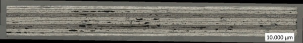Figure 1c. Stitched overview tile image of the CFRP cross-section, 100×, coaxial light