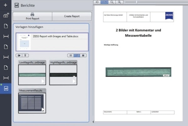 The results of the study can be precisely and efficiently documented using the ZEN 2 core software. The results such as the tables, micrographs, etc can be saved in previously layered out templates through MS Word.