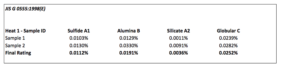 To show the ability of the Clemex Inclusion Rating (CIR) system to distinguish, categorize, measure and rate the inclusions present on the samples. The results have to be expressed in accordance with JIS G 0555, ASTM E45 and DIN K standards