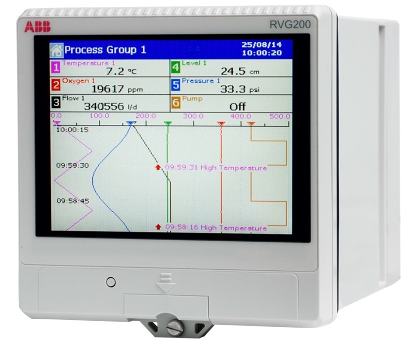 The RVG200 paperless recorder offers a secure and versatile solution for data recording. It is perfect for recording the level of dosing concentration and monitoring fluid flow rate and pump status. The RVG200 can collect data using Modbus™ communications, without the requirement for an analog input card.