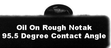 Liquids such as oil, or organic solvents, with a low surface tension can be used to wet the surface for maximum lubrication of solvation. What, however, if you are looking to separate organics or simply don’t want the surface to wet? Hydrophobic materials such as PTFE aren’t effective in repelling oil. Here is an example of what oil and hexadecane look like when placed on a PTFE surface.