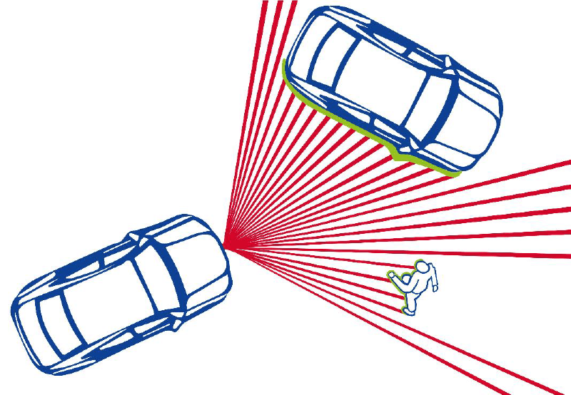 - Monitor the circumambient area: Vehicles which operate at high speeds in particular require an exceedingly broad "visual field," a highly effective predictive system and an exceptionally rapid and dependable detection system.