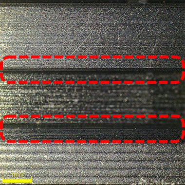 The red dotted rectangle shows piston ring grooves without any burrs.