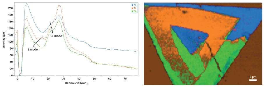 Additionally, a precise characterization of the number of layers of a 2D material is permitted by a Raman analysis very close to the laser line. In this spectral range specific interlayer vibration modes are excited.
