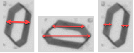 In the example below, a cord length of this crystal can be one size if the particle crosses the focused beam one way and if the crystal enters the detection zone in a different direction it will be a vastly different length. Which is correct?