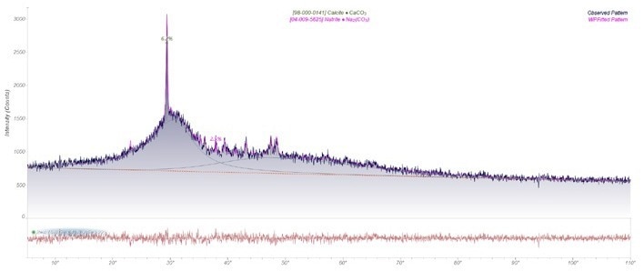 Using WPF Rietveld refinements, quantification was performed. A standardless method for quantification of amorphous content (utilizing pseudo-RiR values) was utilized.