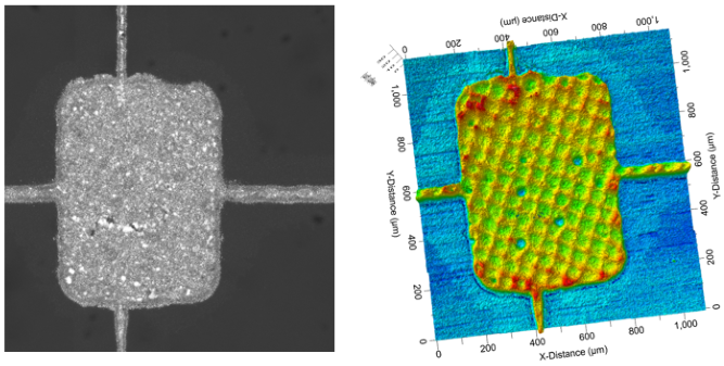 Silver pad measured by the Zeta-Solar optical profiler. The Zeta-Solar automatically measures pad and line dimensions to enable process monitoring.