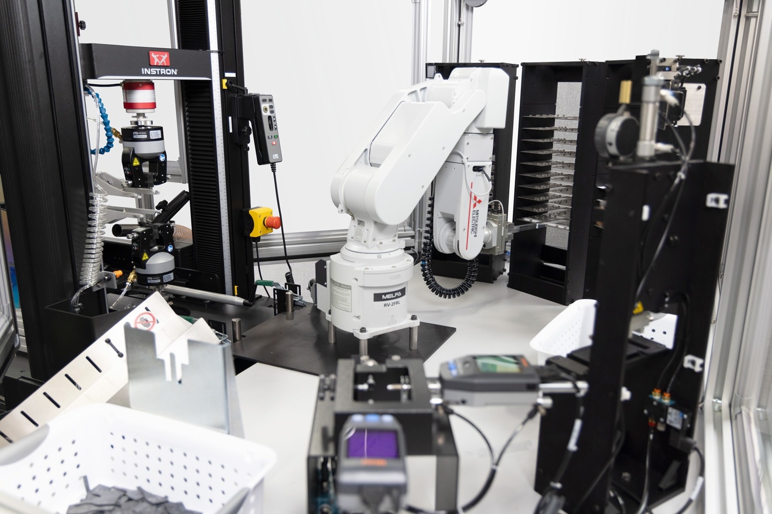 Instron has two main offerings for fully automated systems. The AT3 is designed for mid-sized to large operations by automating a single test frame. Larger labs can utilize the AT6, which can automate multiple test frames with a single robot.