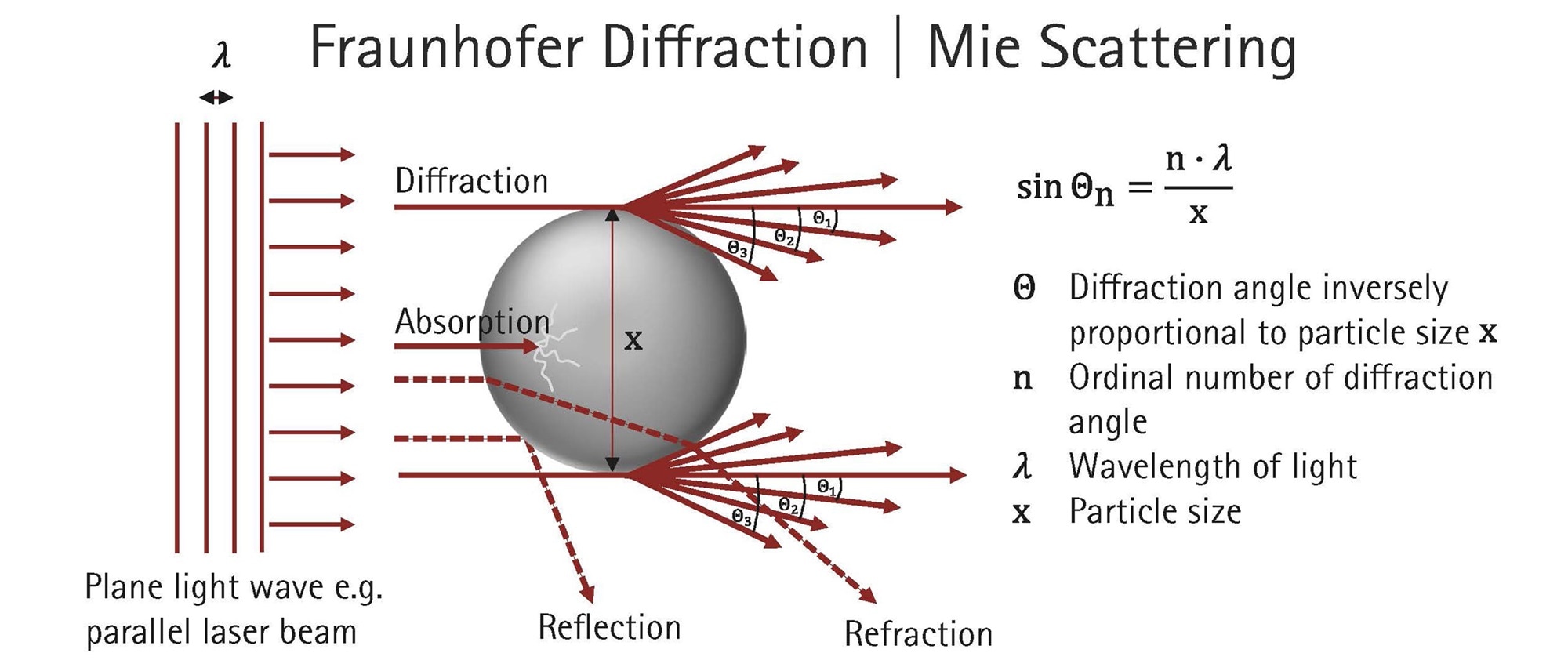 In contrast, calculating the particle size distribution using Mie theory requires knowledge of the refractive index and is only recommended when the optical parameters of diffraction, absorption, and reflection are known.