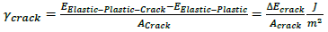 - ΔEcrack (J) is the work or energy determined for each sample (numerator of Equation 3)