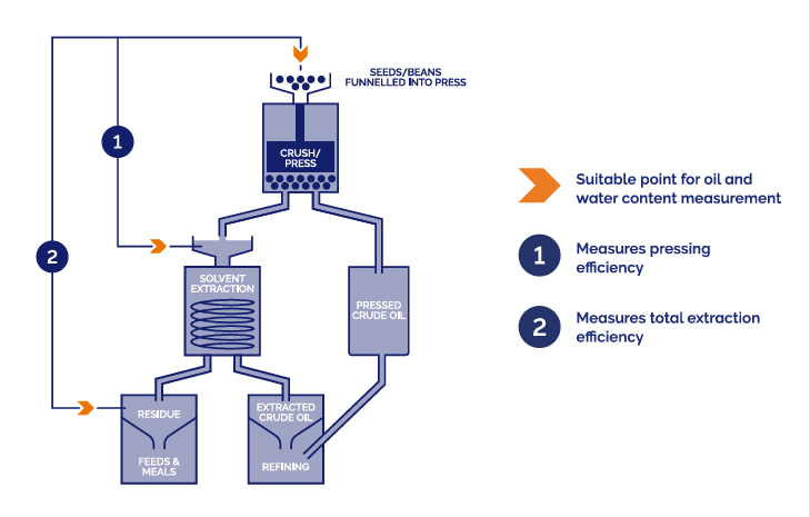 However, the final oil yield is also influenced by extraction process efficiency, which can be monitored by comparing the oil content of incoming oilseeds with the oil content of the residues after pressing and solvent extraction, as depicted in the diagram below.