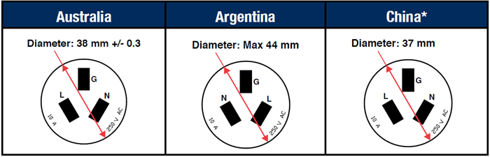 Australia, Argentina, China Plug Comparison Chart (Continued)