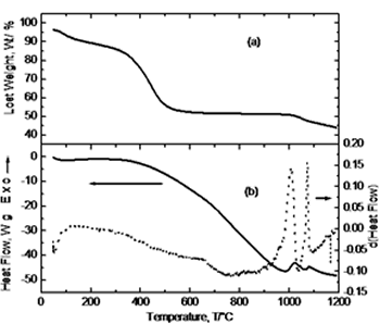 AZoJoMo – AZoM Journal of Materials Online : Simultaneous thermal analysis: (a) thermogravimetric curve (TGA), and (b) differential thermal analysis curve (DTA).