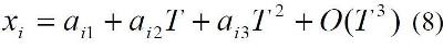 The parameters can then be expanded into a power series with temperature (T) as the independent variable