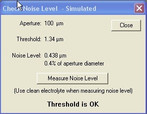 Figure 2A. Screenshot of the “Check the noise level” command under Run/Troubleshooting Menu. Image credit: Beckman Coulter