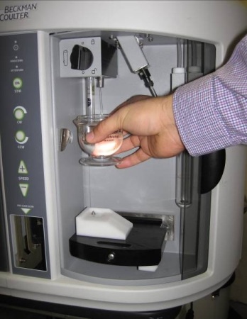 Figure 1. The mini-cuvette adapter allows users to operate the Multisizer 4 with as little as 4 mL of material. Image credit: Beckman Coulter