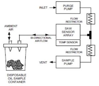 A surface Acoustic Wave (SAW) sensor that is flown over by the headspace detects fuel vapor within a detection range of 0 to 15%. In motor oil, it can identify diesel, gasoline, or jet fuel. It adheres to ASTM D8004, which outlines the "Standard Test Method for Assessing Fuel Dilution in Operational Lubricants Using Surface Acoustic Wave Sensing."