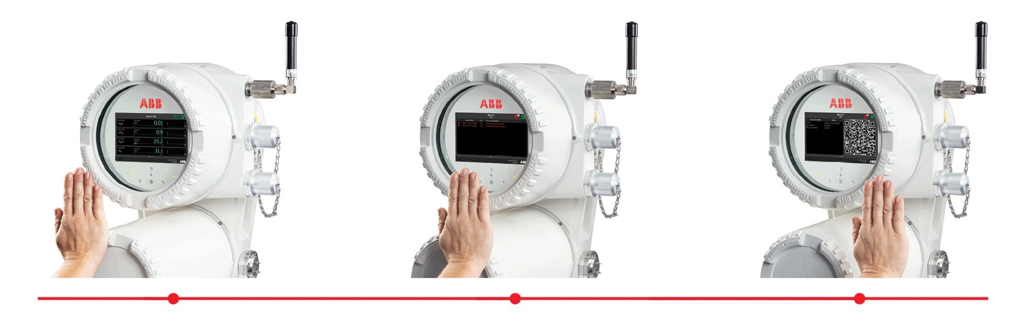 The local HMI is a read-only interface, and navigation is accomplished using a gesture controller. The user can move between the various pages by passing their hand in front of the gesture detector located beneath the screen.