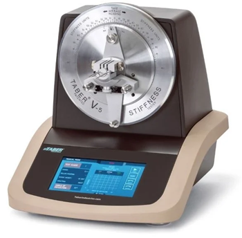 The Taber V5 Stiffness Tester satisfies test methods including Tappi T 489, Tappi T 566, ISO 2493, and JIS P 8125. Additional accessories might be required.