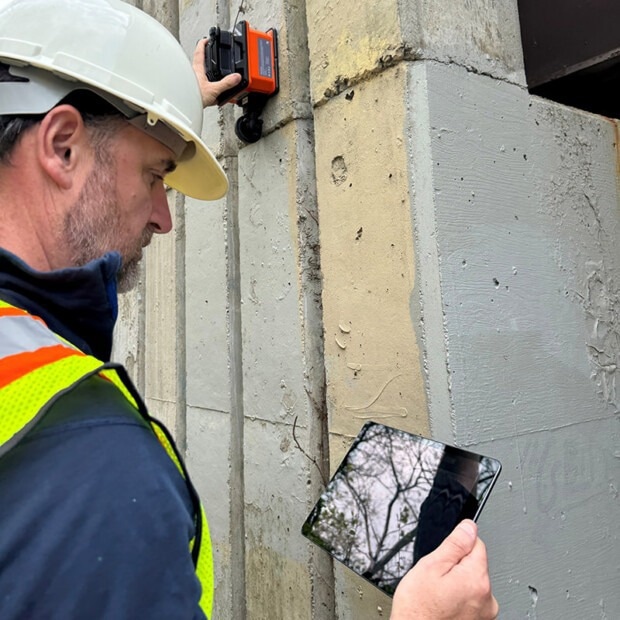 The system has a simple interface with the option to attach the user’s controller solution. The system is suitable for scanning thick concrete and locating deep targets below grade. It has been optimized for improving jobsite efficiency and used for mark-and-go scanning.