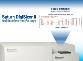 The new generation Saturn DigiSizer II High-Definition Digital Particle Size Analyzer utilizes a state-of-the-art CCD detector containing over three million detector elements, Mie theory, and unique design and data reduction features to provide an extremely high level of resolution and sensitivity not available in other laser particle sizing systems. The Saturn DigiSizer II analyzes and measures particles over a range of 40 nanometers to 2.5 millimeters. Features such as fully automated sampling and low-volume sample handling units and a complete system for circulating the dispersing liquid/sample mixture through the cell and reservoir make the Saturn DigiSizer ideal for a wide range of production, research, and quality control applications.