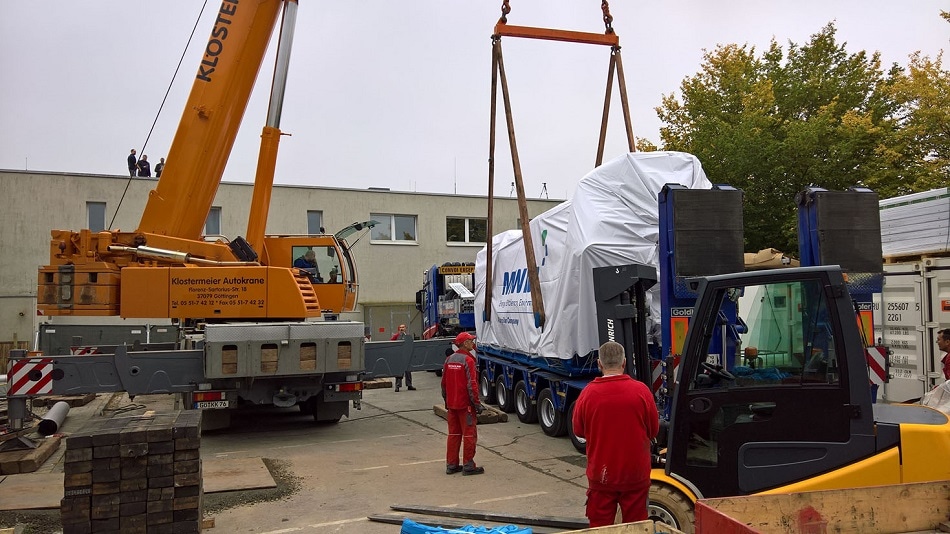 Delivery of the 53 tonne MWM engine for ETW Energietechnik‘s cogeneration
