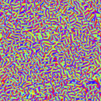 Disordered pattern of eddies of a characteristic size. The color code indicates the local orientation of the liquid crystal. Image Credit: University of Barcelona.