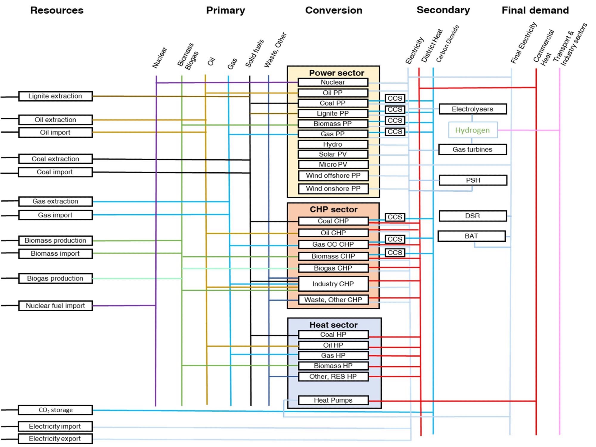 Schematic of energy chain implemented in the MEESA model. Source: own elaboration. Image Credit: Tatarewicz, I et al., Energies