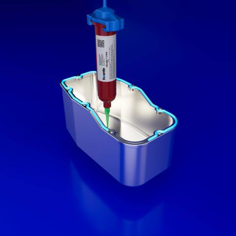 UV curable CIPG Vitralit® CIPG 60200 is dispensed on a 3D geometry to seal a metal housing. Image Credit: Hoenle