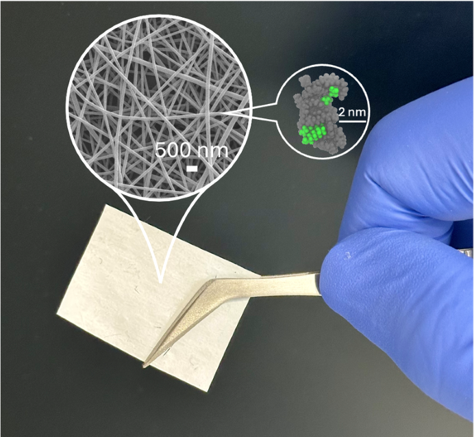 The novel membrane is made from a network of nanofibers that are hundreds of times thinner than the width of a human hair. When placed in water, these nanofibers absorb moisture and swell, acting like a tightening net to trap and hold the pollutants.