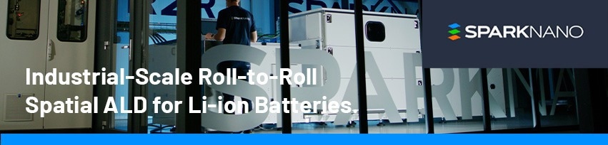In this webinar, SparkNano will showcase how spatial Atomic Layer Deposition (ALD) enhances Li-ion battery performance and demonstrate the scalability of R2R spatial ALD to industrial manufacturing levels.